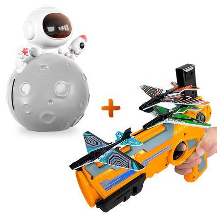 Alcancía Lámpara Astronauta K84 Y Lanza Aviones NJ
