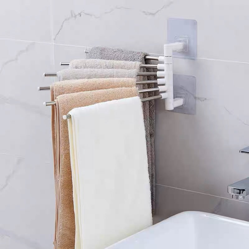 Barra organizadora para colgar toalla de mano o secadores y darle una mejor ventilación. Barra de toallas giratorio para baño o cocina. Trae un adhesivo que se adhiere a la mayólica o melamineEste producto incluye adhesivo uso único para superficies completamente lisas como mayólica, melamine, vidrio templado.Dejar 12 horas instalado para que se pueda adherir completamente, sin colocar ningún objeto encima o dentro. —Precio: S/10—Material: Cromado—Medida: 31×30.2cm