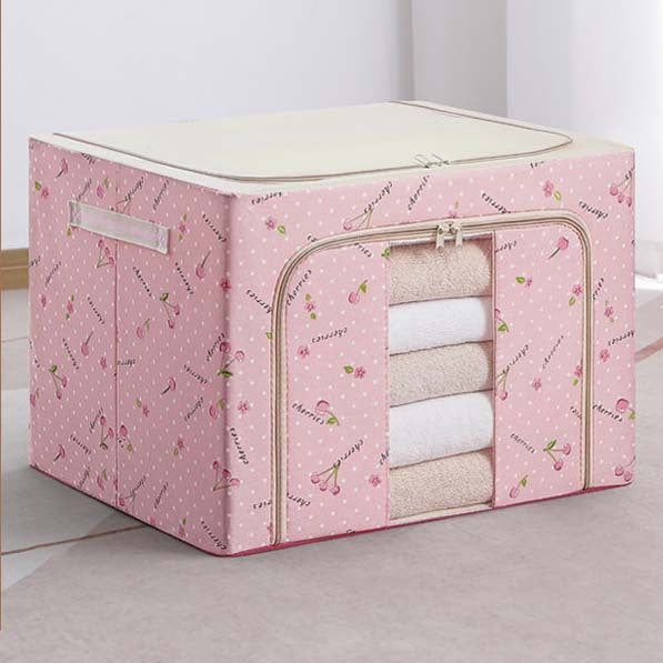 Caja de almacenamiento multifuncional con varillas de acero para mantener en pie la caja, además de tener dos cierres, uno en la parte delantera y otro en la parte de arriba. Permite guardar ropa, a su vez organizar los edredones, frazadas. También podrá utilizarlo para guardar otros objetos, como juguetes, y así mantener su hogar en orden. Podrá apilarlas una sobre otra, para ocupar menos espacio.