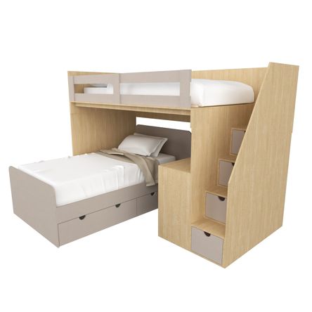 Camarote moderno con Escritorio Sasha MR Muebles Gris con Amaderado 1.5plz