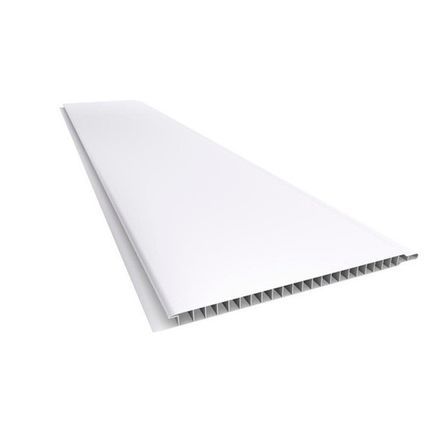 Cielo raso de PVC en color blanco, sistema machihembrado de fijación oculta que te permitirá tener un lindo acabado en cualquier ambiente.Fácilinstalación tipo drywall, solo reemplazando la plancha de yeso por la planchatipo madera (no requiere encintado, masillado, pintado), acabado perfecto alinstante. Medida:2.90 x 0.25 mtsEspesor:7mmPresentación: Unidad