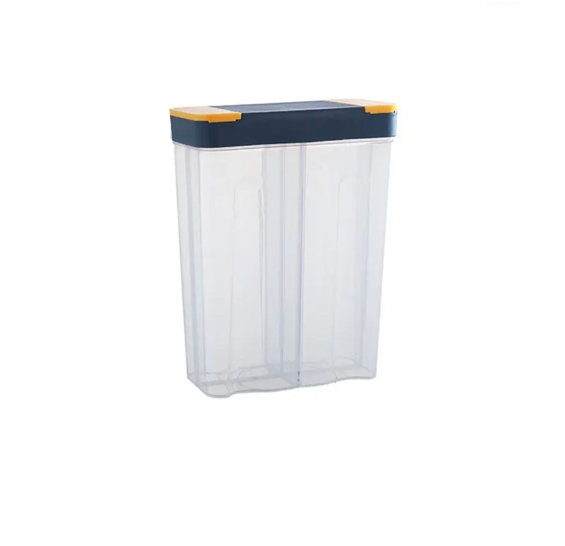 Este producto puede almacenar alimentos sólidos. Cuenta con cuatro compartimientos principales por lo que se puede almacenar 4 insumos diferentes a la vez. —Precio: s/25 —Material: Polipropileno—Medidas: 18.5x24x9cm—Capacidad: 2600ml