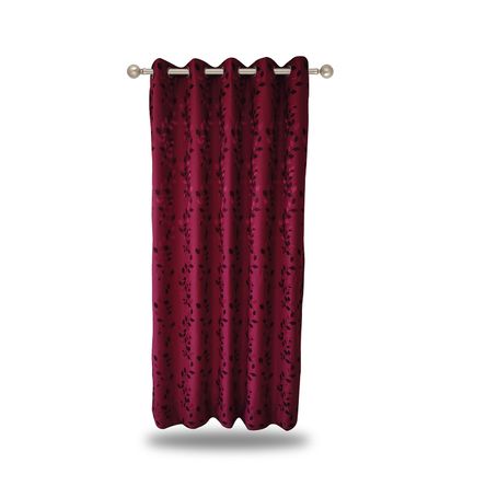 Cortina con Ojalillo de Aluminio Coralpe Jacquard Hojas Guinda