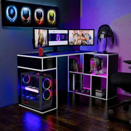 Escritorio Gamer en L 133x80cm NR 11 Movenda Negro Blanco