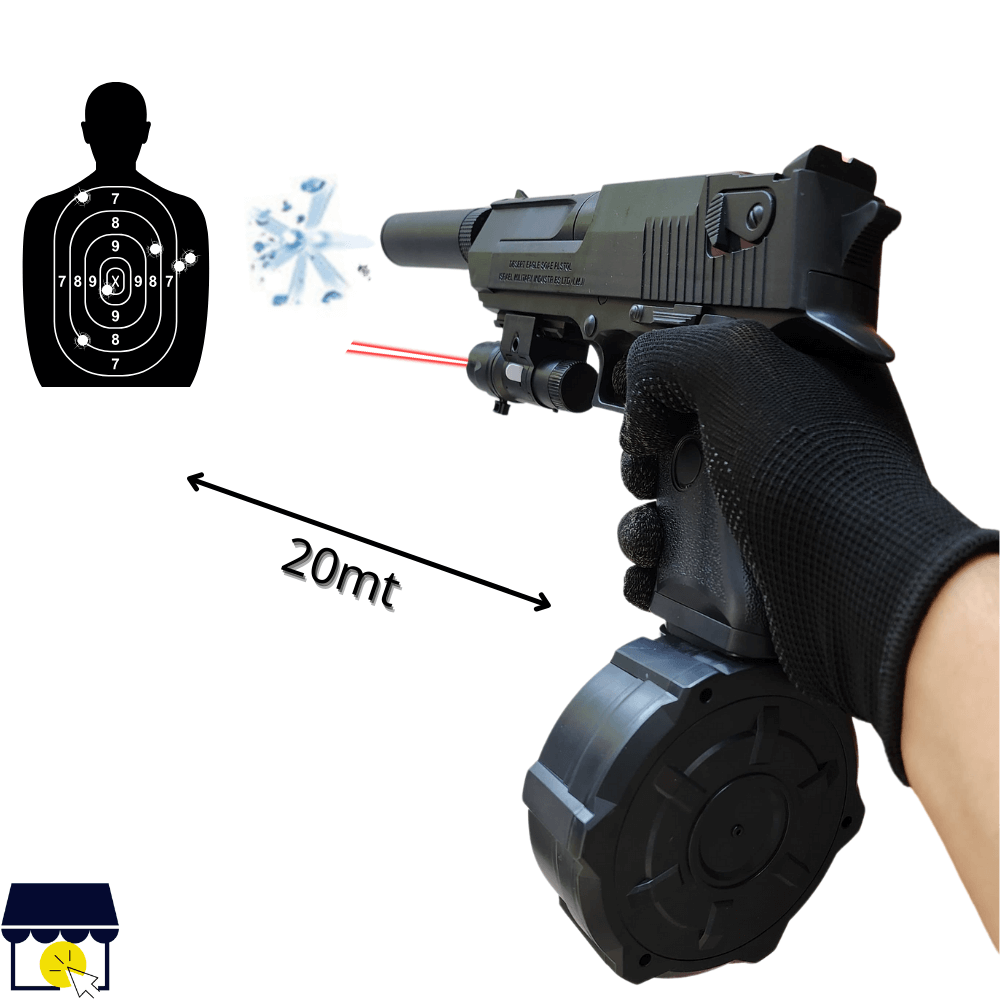 ¡Diviértete por horas con nuestra pistola Glock de hidrogel! Diseñada para amantes de la acción y la adrenalina, esta icónica Glock ofrece una experiencia de juego realista, dinámica y emocionante. Gracias a su diseño aerodinámico y materiales resistentes, podrás disfrutar de partidas intensas y mejorar tu puntería con un alcance de hasta 20 metros.