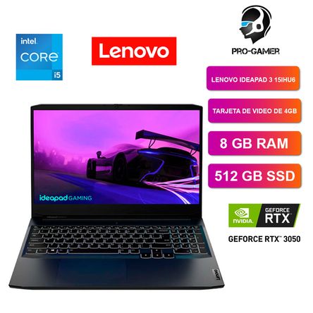 LEN G3 I5-1 8/512/V4G/FREEDOS 512GB SSD M.2 2242 PCIe 3.0×4 NVMe, Video NVIDIA GeForce RTX 3050 4GB GDDR6 (Boost Clock 1500 / 1740MHz, TGP 90W), Audio HD Realtek ALC3287 Codec + Stereo Speakers / 2W x 2 (Nahimic Audio), Cámara Web HD 720p with Privacy Shutter + Microfono 2x Array, LAN GbE (RJ-45), Wireless LAN WiFi 6 / 802.11ax 2×2 + Bluetooth 5.0, Bateria (Integrada) 45Wh, Adaptador de poder AC 170W Slim Tip (3-pin), Teclado en español (LA) White Backlit, Color Shadow Black (Negro).No incluye Sistema Operativo / FreeDos