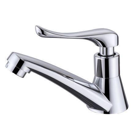 Llave para Lavatorio al Mueble cromado de agua fria, que viene con un cuerpo redondo y perilla minimalista plana. Este producto está fabricado en acero, cuenta con un vástago de zinc alloy, manija de 1/4 de giro con acabados cromados y está diseñado para aportar un estilo elegante a su baño; combinación perfecta entre modernidad y durabilidad.