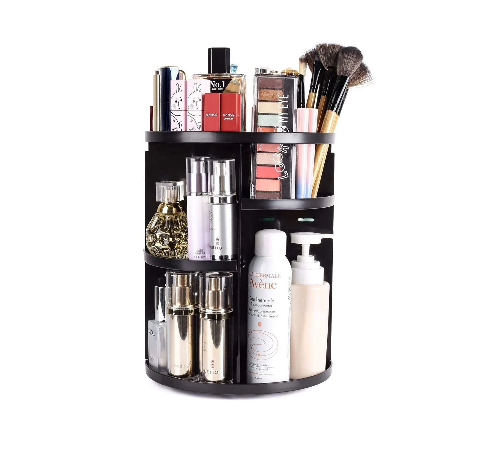 Consigue tus productos de maquillaje fácilmente, solo gira el organizador de maquillaje. Organiza y almacena perfectamente tus cosméticos, y di adiós al desordenado vestidor.