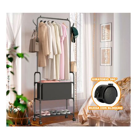 Perchero Colgador Organizador Estante Ropa Carteras Negro Con Ruedas