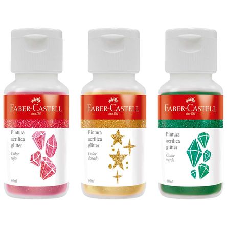 Pinturas Acrílicas FABER CASTELL Glitter Dorado-Rosa-Verde 60ml 3un