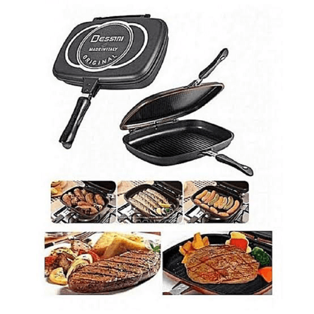 Cocina saludable y de la mejor manera con Utensilios GOURMET ANTIADHERENTES, que además le darán a tu cocina distinción y elegancia.El Sarten Doble Parrilla Grill DESSINI proporciona dos tipos de superficies: Una superficie plana y una superficie Grill. En ambos lados distribuyen el calor de manera uniforme, así que usted puede obtener la carne a la parrilla que tanto desea. Aparte de asar a la parrilla, la bandeja de doble cara también es ideal para freír.