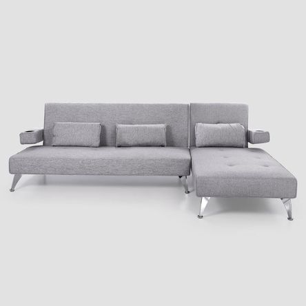 Seccional Cama Gris + 3 Cojines