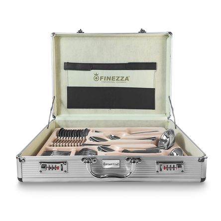 Realizados de acero inoxidable 18/10 (acero de la mejor y más alta calidad para cocina) que lo hace resistente al uso y un aspecto inalterable al paso del tiempo.Su diseño clásico y versátil se adapta a los diferentes estilos de vida casual o formal.El peso y forma de cada pieza están pensados para ofrecer una maniobrabilidad y confort máximosAcabado pulido tipo espejo, fácil de limpiar.Es resistente a las marcas de agua y ralladurasSu diseño permite su fácil limpieza.ACCESORIOS Y MEDIDASCanitidad: – Cuchara de mesa: 12 Unid. – Tenedores de mesa: 12 Unid. – Cuchillas de mesa: 12 Unid. – Cuchara de Té: 12 Unid. – Tenedores para torta: 12 Unid.-Cuchara para café: 12 Unid. -Cuchara para servir: 02 Unid. -Tenedores para carne: 02 Unid. -Pinza para azúcar: 01 Unid. -Cuchara para crema: 01 Unid. -Espátula de pastel: 01 Unid. -Cucharón para sopa: 01 Unid. -Cuchara para ensalada: 01 Unid. -Tenedor para ensalada: 01 Unid. -Cucharón para salsa: 01 Unid. -Cuchara para postre: 01 Unid.