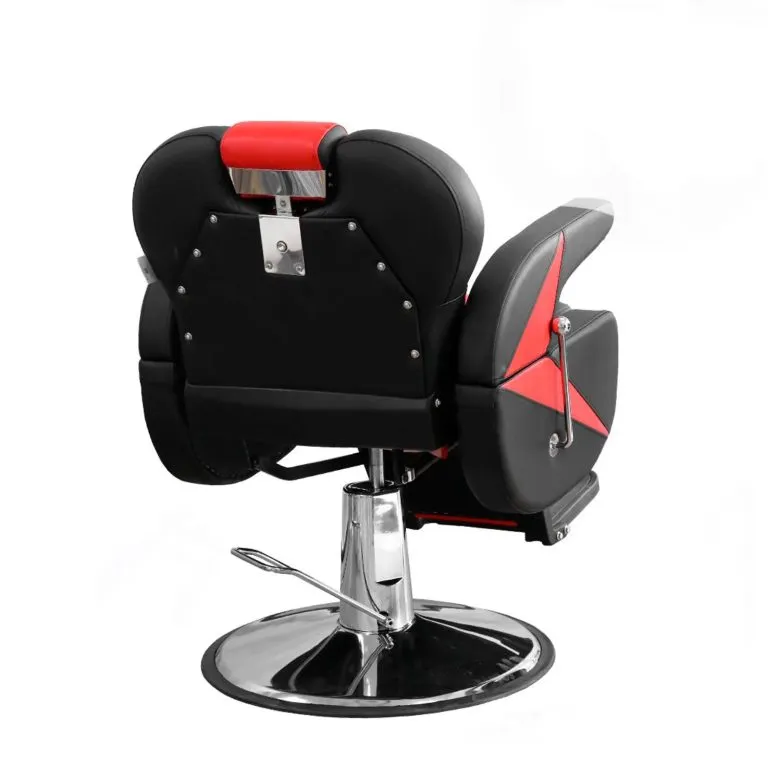 Sillón Barbero Cech.Modelo: Cech-010.Color: Negro Rojo (Base Plateado)Material: Acero, Poliuretano D-23., cuero P.U.Sistema: Hidráulico.Rotación: 360°, Reclinables: de 90° a 135°.Dimensiones: Ancho 72 cm, largo 105 cm, alto 110 cm.Peso del Producto: 68 kg.Capacidad Carga: 220 kg.