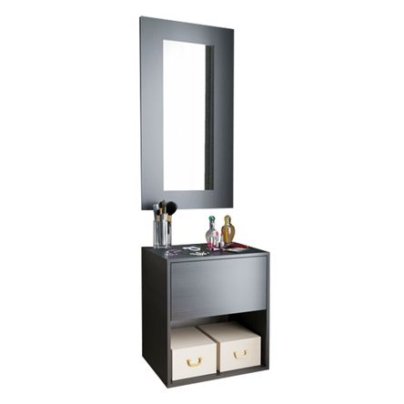 Tocador Flotante Behome con EspejoFuncional y elegante mueble tocador con espejo para el dormitorio.Material del tablero: Aglomerado de madera recubierto de melaminaDimensiones del tocador : 53 cm x 40 cm x 58 cm Dimensiones del espejo : 53 cm x 1.5 cm x 98 cm