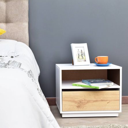 Velador Moderno 1 cajón Aries color Blanco/Duna TU MESITA