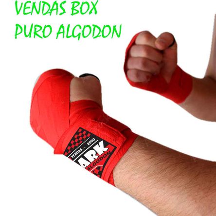 Vendas para box esta confeccionada por una cinta de fibra de algodón y velcro resistente la cual es fácil de colocar sobre las manos y muñeca.Las vendas de box deben de usarse: a.-Evita que las bacterias vivan dentro de tus guantes. b.- Atrapa el sudor de la mano. c.- Evita el mal olor.d.- Protege los huesos de las manos.Instrucciones de uso:a.- Debes primero asegurar el dedo gordo o pulgar.b.- Empieza por la muñeca y desde la parte de atrás de la mano (no hacia el lado de la palma).c.- Véndate la mano, pasando la venda en diagonal entre el pulgar y el índice.