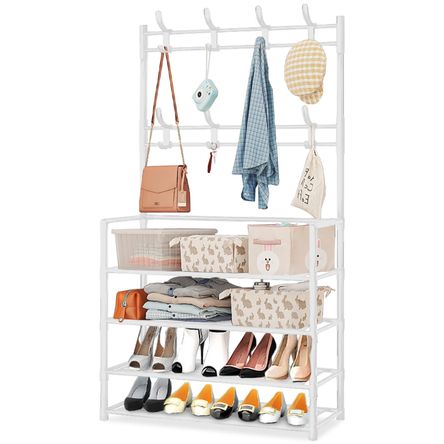 Zapatera y Perchero Organizador Colgador de Ropa Blanco 440CU